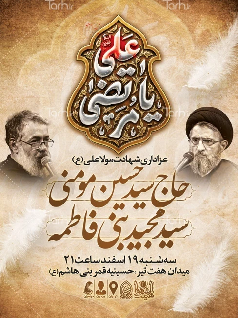 طرح بنر اطلاعیه شهادت حضرت علی دارای تایپوگرافی یا مرتضی علی کد فایل 0749813