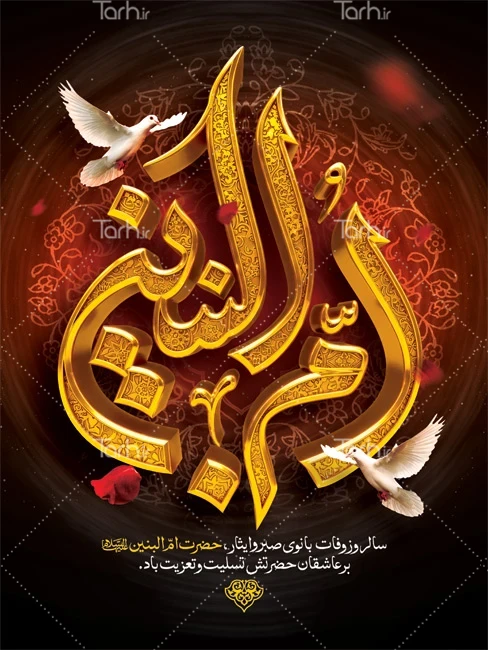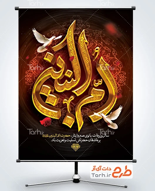 طرح بنر لایه باز وفات حضرت ام البنین با فرمت psd و قابل ویرایش در نرم افزار فتوشاپ به صورت لایه باز توسط تیم طراحان طرح دات آی آر طراحی شده است. در طرح لایه باز وفات ام البنین از تصاویر و المان های با کیفیت و متناسب با استاندارد چاپ استفاده گردیده است. طرح بنر وفات حضرت ام البنین شامل تایپوگرافی ام البنین و عکس کبوتر می باشد که المان های استفاده شده در بنر رحلت حضرت ام البنین قابلیت ویرایش، جابه جایی و تغییر سایز را دارا بوده و شما می توانید متناسب با سلیقه خودتان طرح وفات ام البنین را ویرایش نمایید.