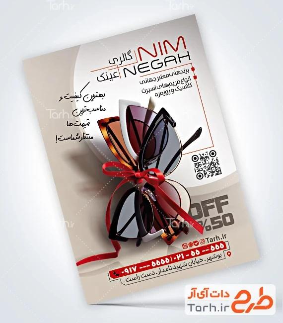 فایل لایه باز تراکت فروشگاه عینک با عکس عینک دودی کد فایل 0783261