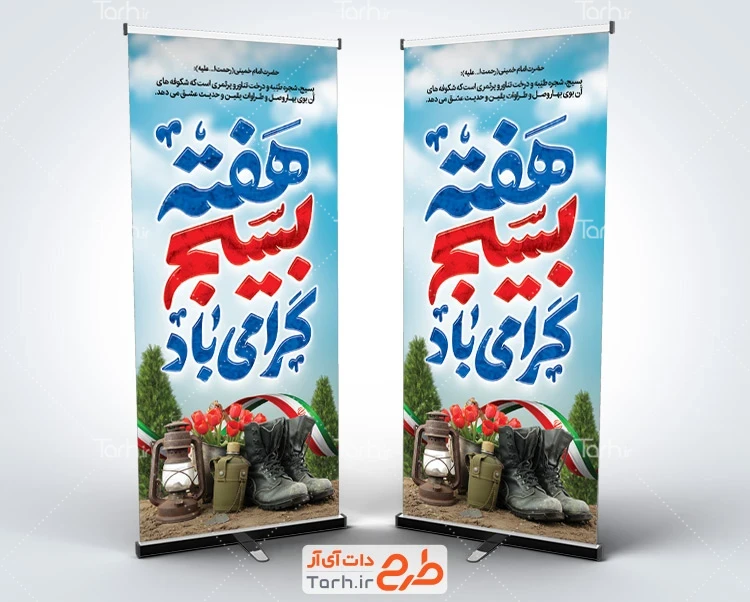 ابعاد قابل چاپ لمپوست و استند هفته بسیج و کاربرد آن