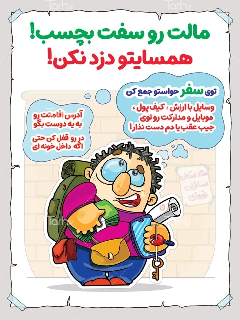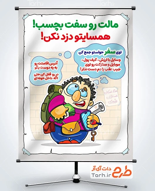 طرح بنر رعایت ایمنی در سفرهای نوروزی با فرمت psd و قابل ویرایش در نرم افزار فتوشاپ به صورت لایه باز توسط تیم طراحان طرح دات آی آر طراحی شده است. در بنر خام رعایت ایمنی در سفر از تصاویر و المان های با کیفیت و متناسب با استاندارد چاپ استفاده گردیده است. بنر هشدار ایمنی در مسافرت نوروزی شامل تصویرسازی مرد با کوله پشتی می باشد که المان های استفاده شده در طرح بنر رعایت ایمنی در سفرهای نوروزی قابلیت ویرایش، جابه جایی و تغییر سایز را دارا بوده و شما می توانید متناسب با سلیقه خودتان طرح بنر ایمنی در سفرهای نوروزی را ویرایش نمایید.