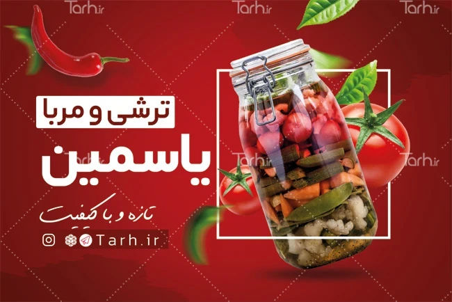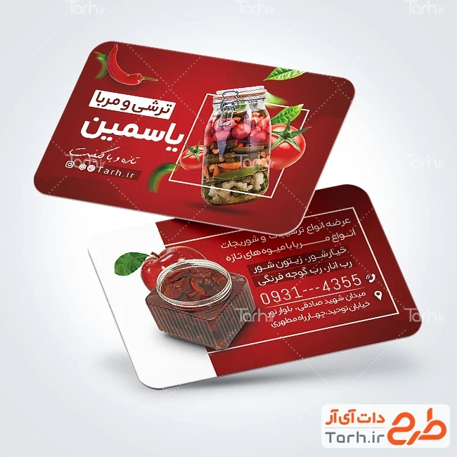 نمونه کارت ویزیت فروشگاه مربا و ترشی دارای رنگبندی قرمز کد فایل 0861549