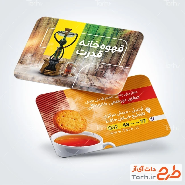 ابعاد قابل چاپ طرح کارت ویزیت قهوه خانه و قلیان سرا و کاربرد آن