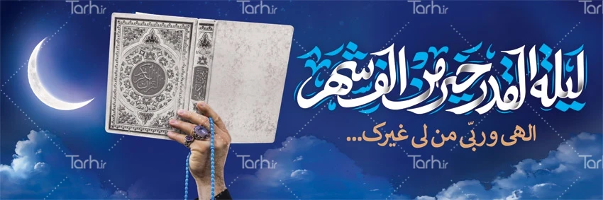 دانلود پلاکارد شب قدر دارای خوشنویسی لیله القدر خیر من الف شهر کد فایل 0874321