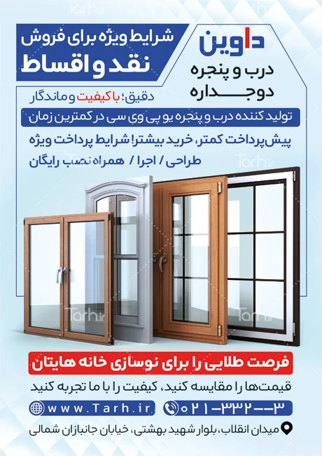 نمونه تراکت درب و پنجره دوجداره با قابلیت ویرایش المان ها کد فایل 0913726