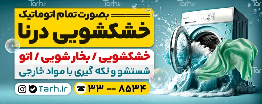 دانلود بنر تبلیغاتی خشکشویی با فرمت psd و قابل ویرایش در نرمافزار فتوشاپ بهصورت لایه باز توسط تیم طراحان طرح دات آی آر طراحی شده است. در طرح لایه باز بنر خشکشویی از تصاویر و المانهای باکیفیت و متناسب با استاندارد چاپ استفادهشده، همچنین نکات مهم در طرح لایه باز بنر مغازه مانند رنگبندی، رعایت حاشیه، فاصلهها، سایز و نوع فونت مناسب طراحی تابلو مشاغل و ... رعایت گردیده است. طرح بنر خشکشویی شامل عکس ماشین لباسشویی و عکس لباس میباشد که المانهای استفادهشده در طرح تابلو خشک شویی قابلیت ویرایش، جابهجایی و تغییر سایز را دارا بوده و شما میتوانید متناسب باسلیقه خودتان طرح بنر تبلیغاتی خشکشویی را ویرایش نمایید، همچنین با تغییر تصاویر و متنها میتوانید طرح تابلو تبلیغاتی خشکشویی را به طرح تابلوی شغل موردنظر خود تبدیل نمایید.