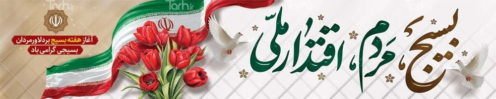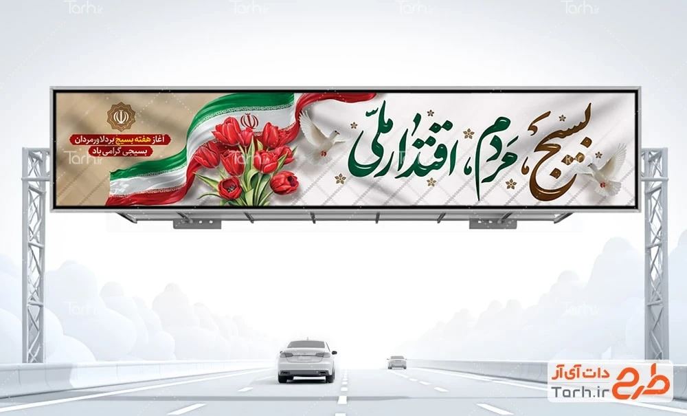بنر بیلبورد هفته بسیج با تایپوگرافی بسیج مردم اقتدار ملی کد فایل 0937281