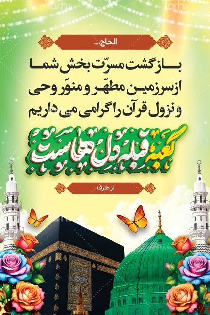طرح خام بنر خیرمقدم مکه شامل عکس کعبه و مسجد النبی کد فایل 0961485