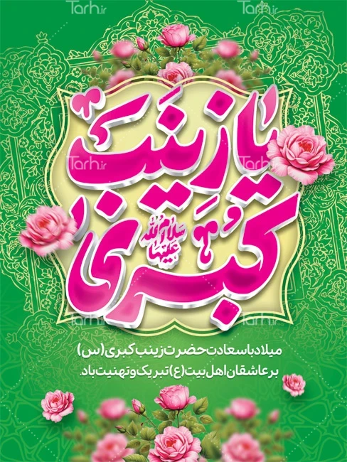 طرح آماده پوستر ولادت حضرت زینب با تایپوگرافی یا زینب کبری کد فایل 0963452