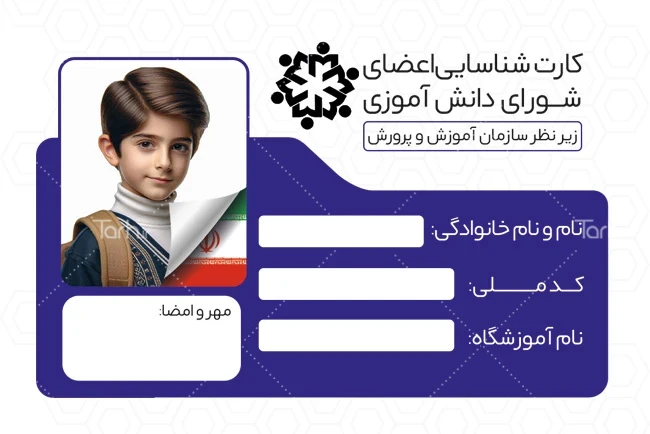 طرح آماده کارت اعضای شواری دانش آموزی با فرمت psd و قابل ویرایش در نرمافزار فتوشاپ بهصورت لایه باز و پشت و رو (دو رو) توسط تیم طراحان طرح دات آی آر طراحی شده است. طرح لایه باز کارت شناسایی اعضای شورای دانش آموزی از تصاویر و المانهای باکیفیت و متناسب با استاندارد چاپ استفادهشده، همچنین نکات مهم در طرح کارت مانند رنگبندی، رعایت حاشیه، فاصلهها، فضای کافی برای درج متن، سایز و نوع فونت مناسب طراحی کارت و ... رعایت گردیده است. نمونه کارت اعضای شورای دانش آموزی شامل عکس زنبور و اطلاعات شخصی میباشد که المانهای استفادهشده در طرح کارت عضویت اعضای شورای دانش آموزی قابلیت ویرایش، جابهجایی و تغییر سایز را دارا بوده و شما میتوانید متناسب باسلیقه خودتان کارت لایه باز شورای دانش آموزی را ویرایش نمایید، همچنین با تغییر تصاویر و متنها میتوانید طرح کارت دانش آموزی را به طرح کارت کسب و کار مد نظر خود شخصی سازی نمایید.