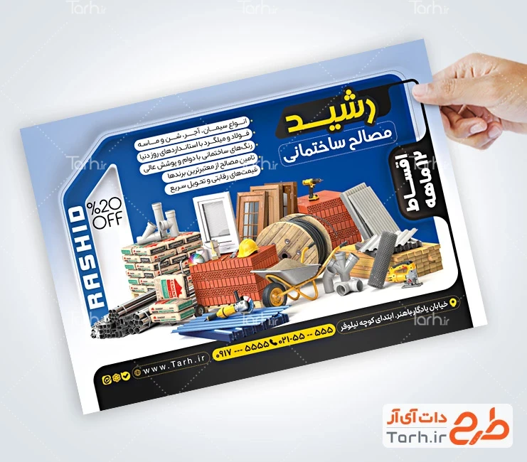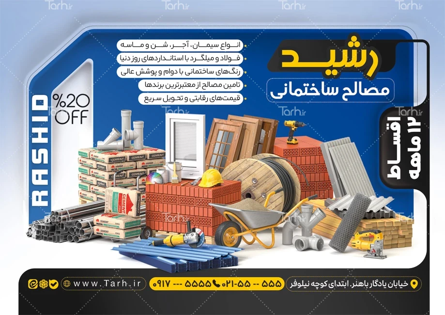 طرح آماده تراکت مصالح فروشی با تم آبی کد فایل 0973481