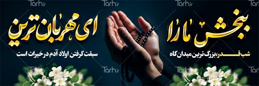 طرح بنر پلاکارد شب قدر با خوشنویسی ببخش ما را ای مهربان ترین کد فایل 0973584