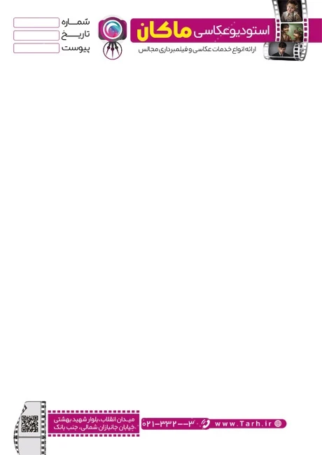 طرح سربرگ استودیو عکاسی و فیلم برداری با فرمت psd و قابل ویرایش در نرمافزار فتوشاپ بهصورت لایه باز توسط تیم طراحان طرح دات آی آر طراحی شده است. در طرح لایه باز سربرگ استودیو عکاسی از المانهای باکیفیت و متناسب با استاندارد چاپ استفادهشده، همچنین نکات مهم در طرح سربرگ خام آتلیه عکاسی مانند رنگبندی، رعایت حاشیه، فاصلهها، فضای کافی برای درج متن، سایز و نوع فونت مناسب طراحی سربرگ و ... رعایت گردیده است. سربرگ لایه باز آتلیه عکاسی شامل لوگو آتلیه عکاسی و محل جایگذاری مشخصات میباشد که المانهای استفادهشده در نمونه سربرگ فروش تجهیزات عکاسی قابلیت ویرایش، جابهجایی و تغییر سایز را دارا بوده و شما میتوانید متناسب باسلیقه خودتان طرح سربرگ استودیو عکاسی را ویرایش نمایید، همچنین با تغییر لوگو و متنها میتوانید طرح سربرگ آتلیه عکاسی را به طرح سربرگ کسب و کار مد نظر خود شخصی سازی نمایید. در اسناد و نامههای اداری و تجاری، سربرگ به عنوان وسیلهای برای نمایش اطلاعاتی مانند نام و لوگو یک شرکت یا سازمان، عنوان سند، تاریخ، شماره صفحه و اطلاعات تماس ( شماره تلفن، آدرس پستی، وبسایت و ایمیل) به کار میرود. این اطلاعات به دریافتکننده کمک میکند تا به راحتی با شرکت یا سازمان تماس بگیرد یا از منابع اطلاعاتی بیشتری بهرهبرداری کند.