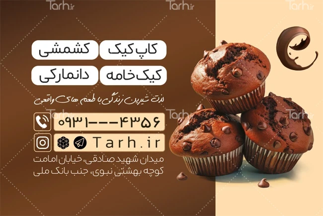نمونه کارت ویزیت شیرینی فروشی شامل عکس کاپ کیک کد فایل 1024579