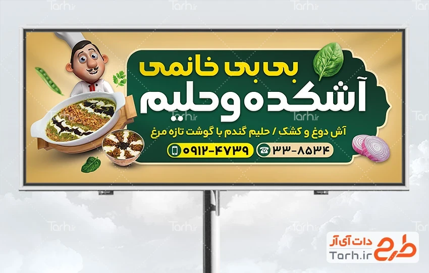 ابعاد قابلچاپ تابلو آش و حلیم و کاربرد آن