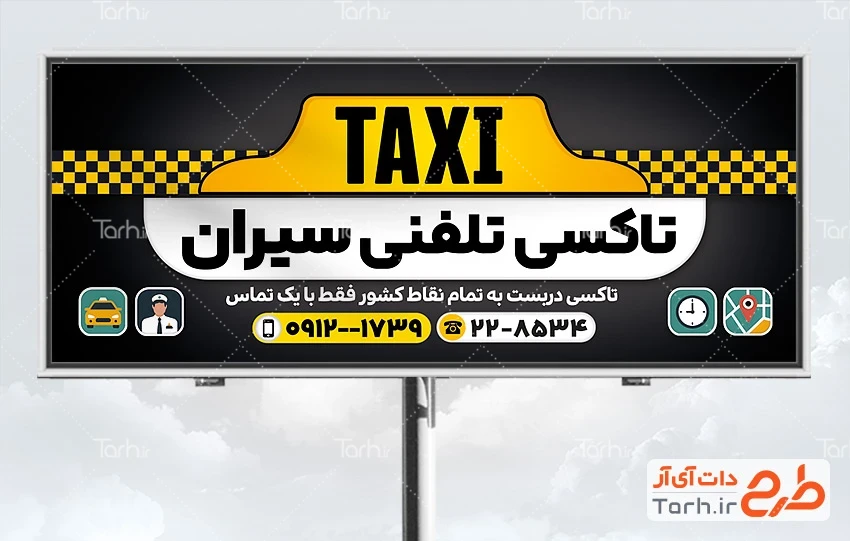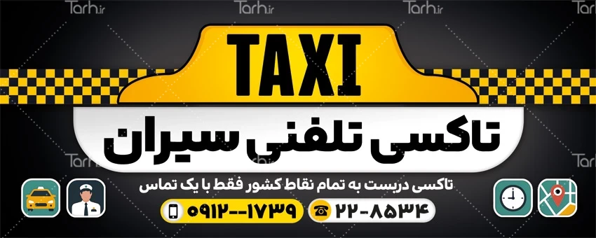 فایل لایه باز بنر تاکسی تلفنی با محل جایگذاری آدرس و شماره تماس کد فایل 1053762
