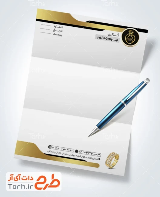 دانلود طرح سربرگ جواهری با فرمت psd و قابل ویرایش در نرمافزار فتوشاپ بهصورت لایه باز توسط تیم طراحان طرح دات آی آر طراحی شده است. در طرح لایه باز سربرگ طلافروشی از المانهای باکیفیت و متناسب با استاندارد چاپ استفادهشده، همچنین نکات مهم در طرح سربرگ خام جواهری مانند رنگبندی، رعایت حاشیه، فاصلهها، فضای کافی برای درج متن، سایز و نوع فونت مناسب طراحی سربرگ و ... رعایت گردیده است. سربرگ لایه باز جواهری شامل لوگو جواهری و محل جایگذاری مشخصات و رنگبندی طلایی میباشد که المانهای استفادهشده در نمونه سربرگ جواهری قابلیت ویرایش، جابهجایی و تغییر سایز را دارا بوده و شما میتوانید متناسب باسلیقه خودتان طرح سربرگ طلا فروشی را ویرایش نمایید، همچنین با تغییر لوگو و متنها میتوانید طرح سربرگ جواهری را به طرح سربرگ کسب و کار مد نظر خود شخصی سازی نمایید. در اسناد و نامههای اداری و تجاری، سربرگ به عنوان وسیلهای برای نمایش اطلاعاتی مانند نام و لوگو یک شرکت یا سازمان، عنوان سند، تاریخ، شماره صفحه و اطلاعات تماس ( شماره تلفن، آدرس پستی، وبسایت و ایمیل) به کار میرود. این اطلاعات به دریافتکننده کمک میکند تا به راحتی با شرکت یا سازمان تماس بگیرد یا از منابع اطلاعاتی بیشتری بهرهبرداری کند.