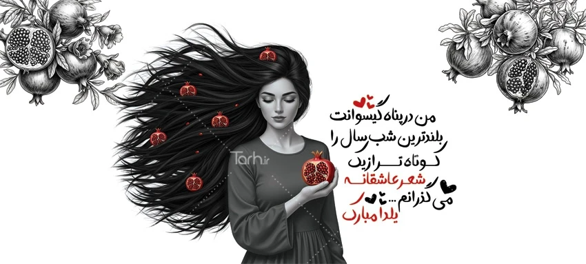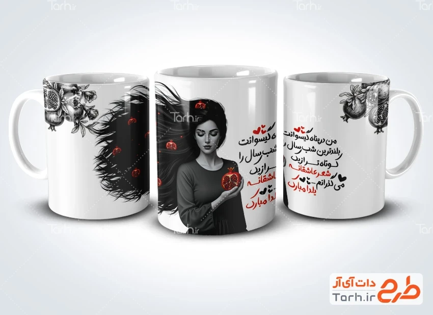 طرح قابل ویرایش ماگ شب یلدا شامل عکس دختر مو مشکی کد فایل 1086579