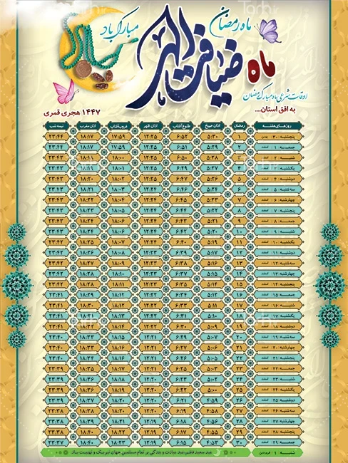 ابعاد قابل چاپ طرح اوقات شرعی ماه رمضان و کاربرد آن