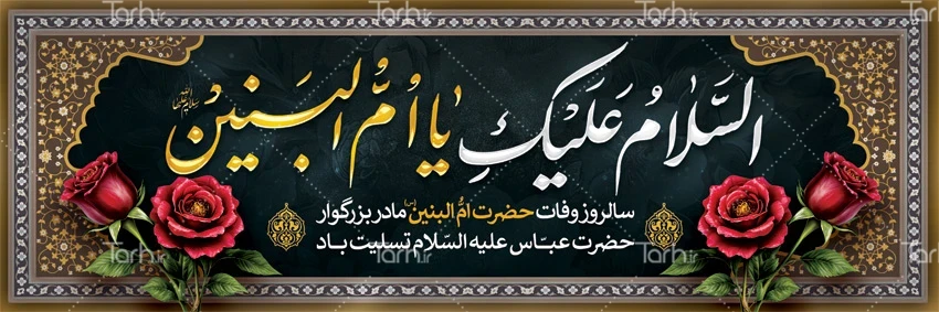 فایل لایه باز پلاکارد رحلت ام البنین با تایپوگرافی السلام علیک یا ام البنین کد فایل 1095784