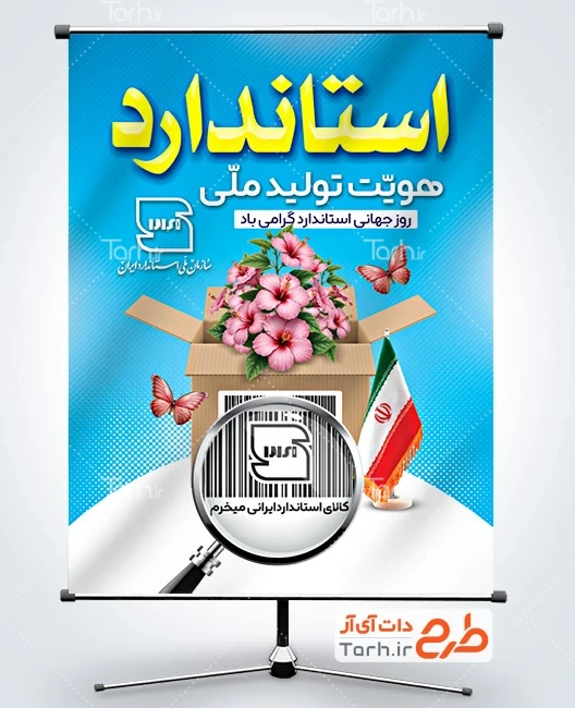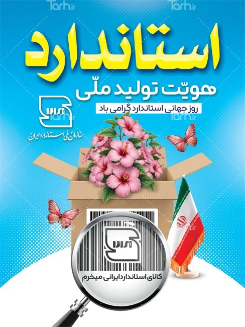 طرح لایه باز پوستر روز استاندارد با فرمت psd و قابل ویرایش در نرم افزار فتوشاپ به صورت لایه باز توسط تیم طراحان طرح دات آی آر طراحی شده است. در بنر خام تبریک روز استاندارد از تصاویر و المان های با کیفیت و متناسب با استاندارد چاپ استفاده گردیده است. پوستر روز جهانی استاندارد شامل عکس پرچم ایران، جعبه و گل می باشد که المان های استفاده شده در طرح لایه باز بنر روز استاندارد قابلیت ویرایش، جابه جایی و تغییر سایز را دارا بوده و شما می توانید متناسب با سلیقه خودتان طرح روز جهانی استاندارد را ویرایش نمایید.
