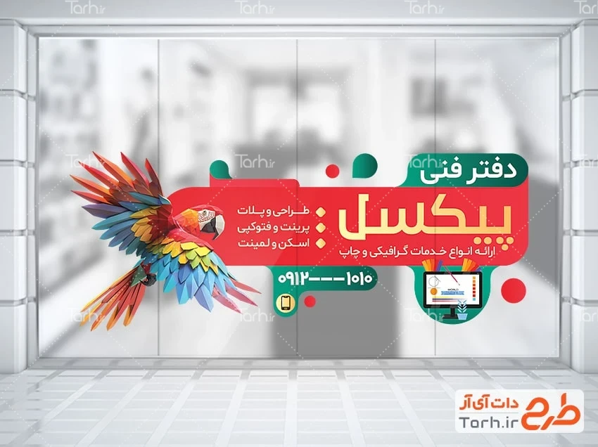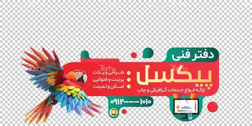 فایل لایه باز استیکر دفتر فنی با عکس طوطی کد فایل 1245780