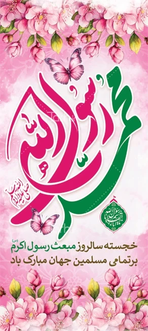 طرح بنر شهری عید مبعث با خوشنویسی محمد رسول الله کد فایل 1245860