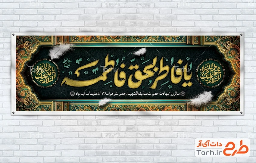 دانلود طرح لایه باز پلاکارد فاطمیه با فرمت psd و قابل ویرایش در نرم افزار فتوشاپ به صورت لایه باز توسط تیم طراحان طرح دات آی آر طراحی شده است. در طرح بنر فاطمیه از تصاویر و المان های با کیفیت و متناسب با استاندارد چاپ استفاده گردیده است. پلاکارد لایه باز شهادت حضرت فاطمه شامل تایپوگرافی یا فاطر بحق فاطمه، السلام علیک یا فاطمه الزهرا و وکتور پر می باشد که المان های استفاده شده در طرح لایه باز فاطمیه قابلیت ویرایش، جابه جایی و تغییر سایز را دارا بوده و شما می توانید متناسب با سلیقه خودتان طرح لایه باز پلاکارد فاطمیه را ویرایش نمایید.
