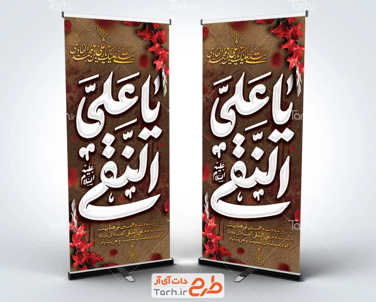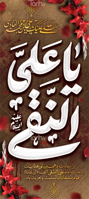 طرح بنر ایستاده شهادت امام هادی شامل خوشنویسی یا علی النقی کد فایل 1258463
