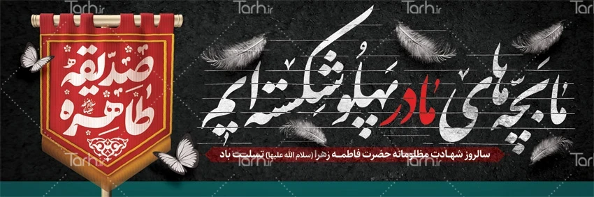 دانلود طرح پلاکارد عزاداری شهادت حضرت فاطمه دارای خوشنویسی ما بچه های مادر پهلو شکسته ایم کد فایل 1260758