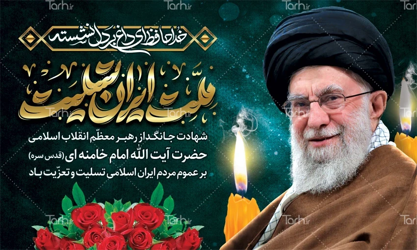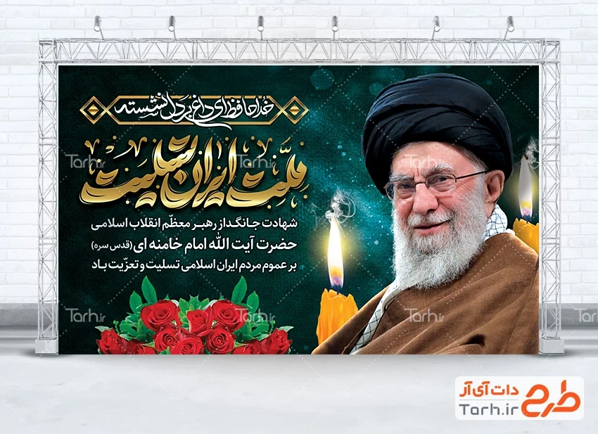 دانلود بنر شهادت رهبر انقلاب دارای تایپوگرافی ملت ایران تسلیت کد فایل 1269370
