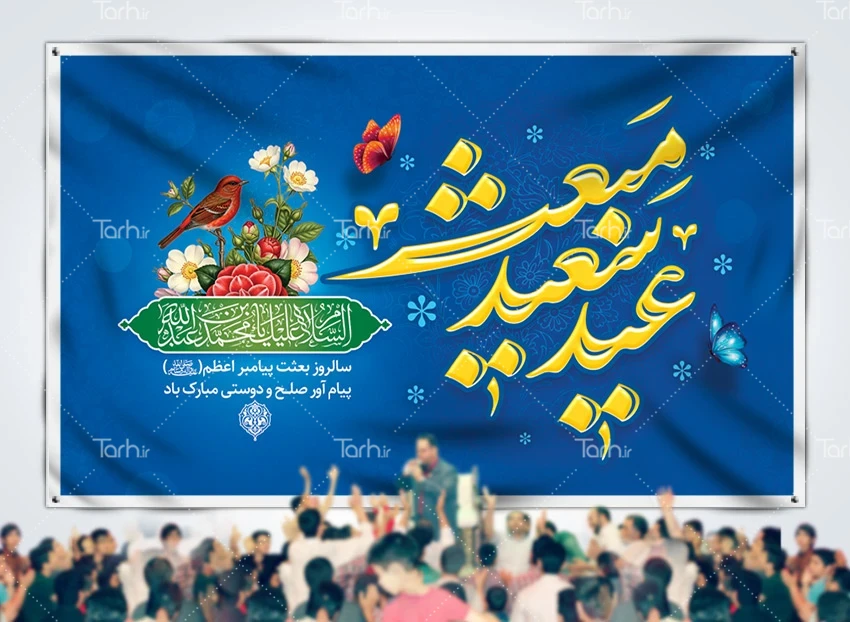 طرح بنر جایگاه جشن عید مبعث با فرمت psd و قابل ویرایش در نرم افزار فتوشاپ به صورت لایه باز توسط تیم طراحان طرح دات آی آر طراحی شده است. در دانلود طرح بنر عید مبعث از تصاویر و المان های با کیفیت و متناسب با استاندارد چاپ استفاده گردیده است. طرح بنر دکور عید مبعث شامل عید مبعث و وکتور گل میباشد که المان های استفاده شده در دانلود بنر پشت منبر عید مبعث قابلیت ویرایش، جابه جایی و تغییر سایز را دارا بوده و شما می توانید متناسب با سلیقه خودتان طرح بنر دکور عید مبعث را ویرایش نمایید.