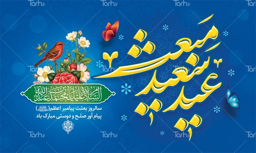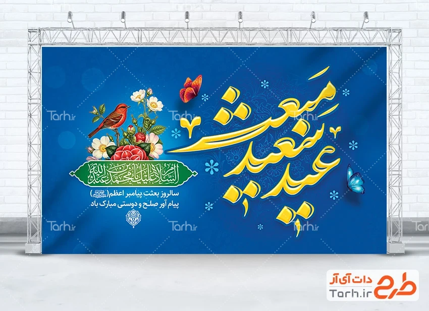 طرح بنر جایگاه جشن عید مبعث با خوشنویسی عید سعید مبعث کد فایل 1273694