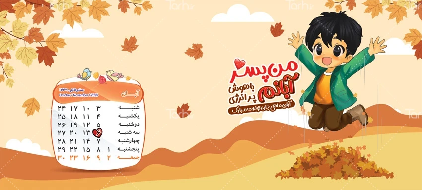 طرح ماگ پسرانه متولد آبان شامل تقویم آبان ماه کد فایل 1276305