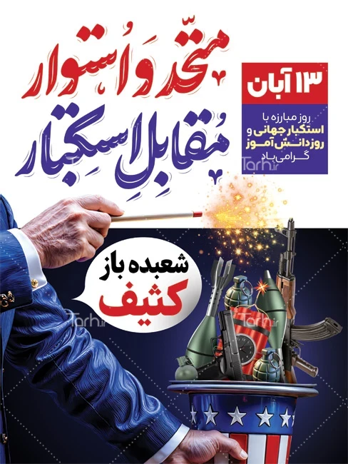 طرح بنر 13 آبان با خوشنویسی متحد و استوار مقابل استکبار کد فایل 1284605