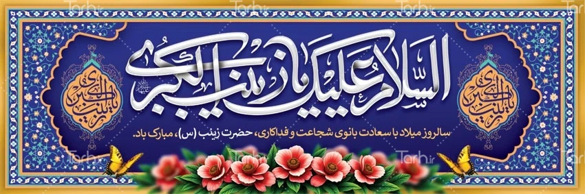 طرح پلاکارد لایه باز ولادت حضرت زینب با فرمت psd و قابل ویرایش در نرم افزار فتوشاپ به صورت لایه باز توسط تیم طراحان طرح دات آی آر طراحی شده است. در طرح لایه باز ولادت حضرت زینب از تصاویر و المان های با کیفیت و متناسب با استاندارد چاپ استفاده گردیده است. طرح بنر میلاد حضرت زینب شامل تایپوگرافی السلام علیک یا زینب الکبری و وکتور گل می باشد که المان های استفاده شده در بنر لایه باز ولادت حضرت زینب قابلیت ویرایش، جابه جایی و تغییر سایز را دارا بوده و شما می توانید متناسب با سلیقه خودتان طرح ولادت حضرت زینب را ویرایش نمایید.