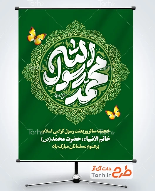 طرح لایه باز پوستر تبریک مبعث با تایپوگرافی محمد رسول الله کد فایل 1295846