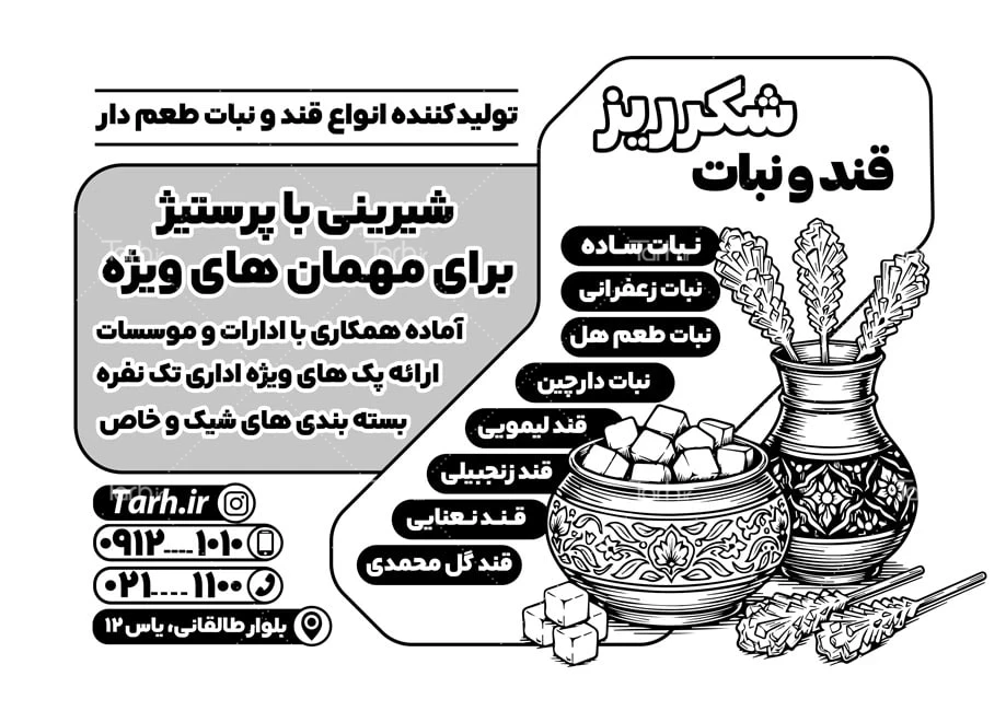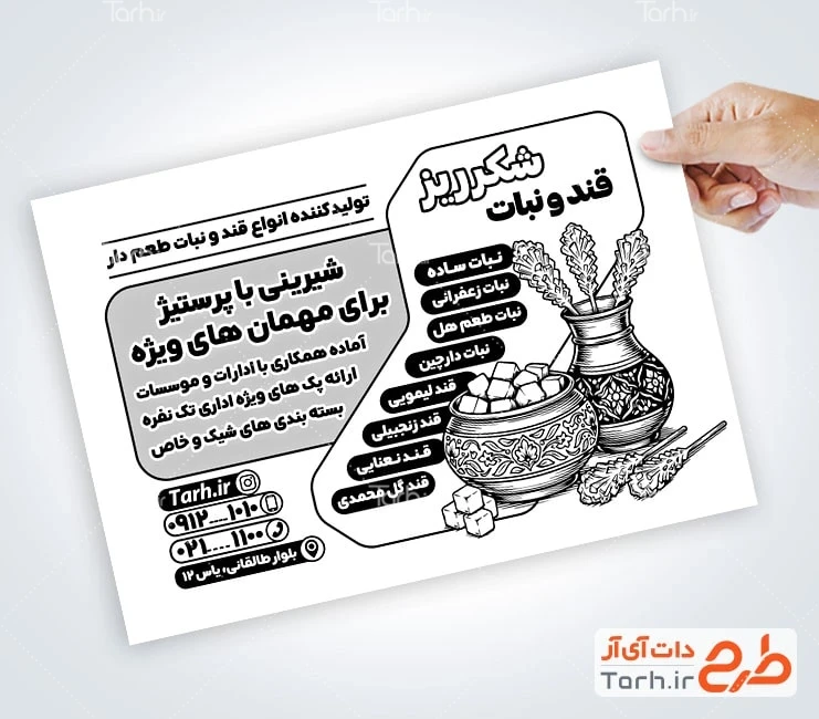 فایل تراکت سیاه و سفید نبات فروشی جهت چاپ تراکت تک رنگ کد فایل 1297045