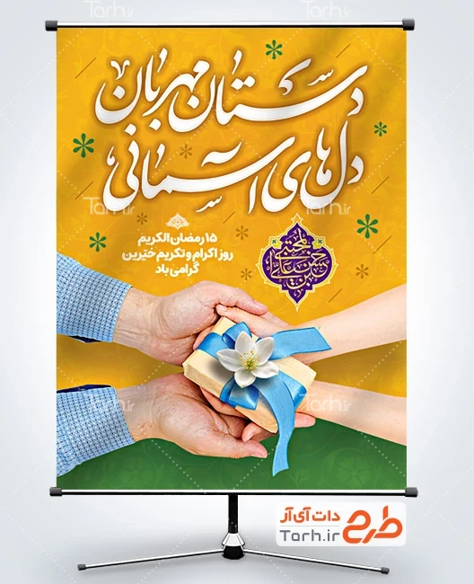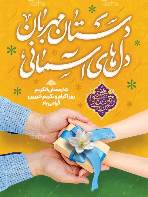 پوستر خام روز اکرام و تکریم خیرین با فرمت psd و قابل ویرایش در نرم افزار فتوشاپ به صورت لایه باز توسط تیم طراحان طرح دات آی آر طراحی شده است. در بنر ماه رمضان از تصاویر و المان های با کیفیت و متناسب با استاندارد چاپ استفاده گردیده است. بنر لایه باز اکرام ایتام در ماه رمضان شامل خوشنویسی دستان مهربان دل های آسمانی، حسن بن علی المجتبی، تصویر دست و جعبه هدیه میباشد که المان های استفاده شده در بنر کمک به نیازمندان و روز اکرام قابلیت ویرایش، جابه جایی و تغییر سایز را دارا بوده و شما می توانید متناسب با سلیقه خودتان طرح بنر اکرام ایتام و بنر ولادت امام حسن مجتبی را ویرایش نمایید.