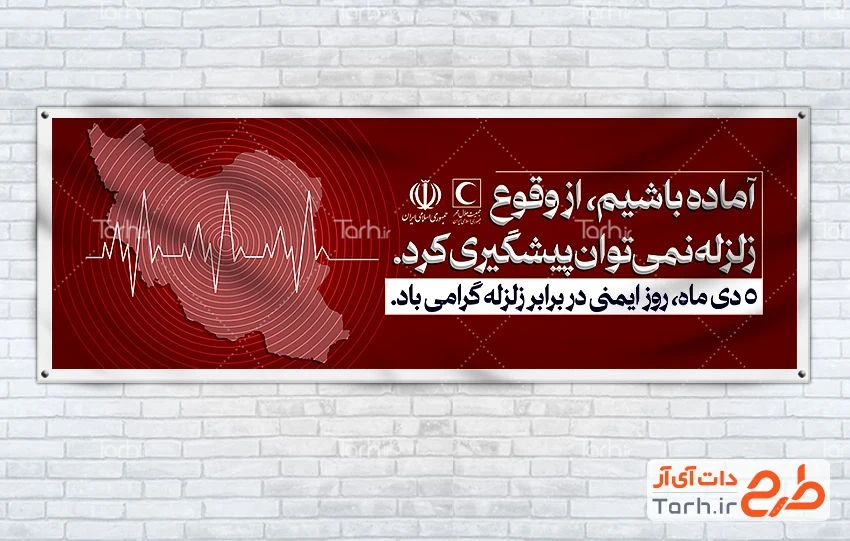 ابعاد قابل چاپ طرح بنر پلاکارد روز ایمنی در برابر زلزله و کاهش اثرات بلایای طبیعی و کاربرد آن