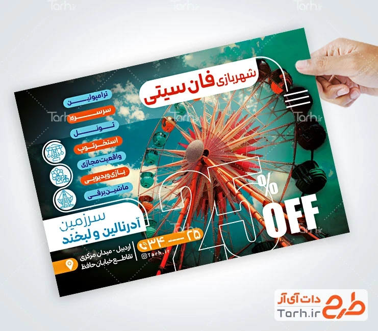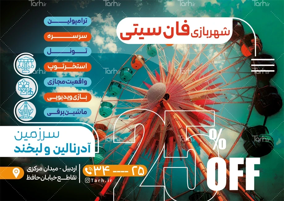 طرح لایه باز تراکت شهربازی با فرمت psd و قابل ویرایش در نرمافزار فتوشاپ بهصورت لایه باز توسط تیم طراحان طرح دات آی آر طراحی شده است. در نمونه تراکت شهربازی از تصاویر و المانهای باکیفیت و متناسب با استاندارد چاپ استفاده شده، همچنین نکات مهم در طرح تراکت شهر بازی مانند رنگبندی، رعایت حاشیه، فاصلهها، فضای کافی برای درج متن، سایز و نوع فونت مناسب طراحی تراکت و ... رعایت گردیده است. طرح لایه باز تراکت پارک و شهر بازی شامل وکتور شهربازی میباشد که المانهای استفادهشده در طرح تراکت پارک و شهربازی قابلیت ویرایش، جابهجایی و تغییر سایز را دارا بوده و شما میتوانید متناسب باسلیقه خودتان تراکت لایه باز شهربازی را ویرایش نمایید، همچنین با تغییر تصاویر و متنها میتوانید طرح تراکت شهربازی سرپوشیده را به طرح تراکت کسب و کار مد نظر خود شخصی سازی نمایید.