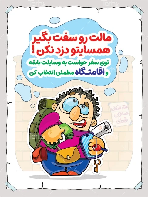 طرح بنر ایمنی در مسافرت نوروزی با فرمت psd و قابل ویرایش در نرم افزار فتوشاپ به صورت لایه باز توسط تیم طراحان طرح دات آی آر طراحی شده است. در بنر خام رعایت ایمنی در سفر از تصاویر و المان های با کیفیت و متناسب با استاندارد چاپ استفاده گردیده است. بنر هشدار ایمنی در مسافرت نوروزی شامل تصویرسازی مرد با کوله پشتی می باشد که المان های استفاده شده در طرح بنر رعایت ایمنی در سفرهای نوروزی قابلیت ویرایش، جابه جایی و تغییر سایز را دارا بوده و شما می توانید متناسب با سلیقه خودتان طرح بنر ایمنی در سفرهای نوروزی را ویرایش نمایید.
