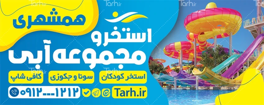 طرح خام بنر تبلیغاتی مجموعه آبی با فرمت psd و قابل ویرایش در نرم افزار فتوشاپ به صورت لایه باز توسط تیم طراحان طرح دات آی آر طراحی شده است. در طرح لایه باز بنر استخر از تصاویر و المان های با کیفیت و متناسب با استاندارد چاپ استفاده شده، همچنین نکات مهم در طرح تابلو مغازه مانند رنگ بندی، رعایت حاشیه، فاصله ها، سایز و نوع فونت مناسب طراحی تابلو مشاغل و ... رعایت گردیده است. طرح بنر استخر سرپوشیده شامل عکس شناگر می باشد که المان های استفاده شده در طرح تابلو سونا و جکوزی قابلیت ویرایش، جابه جایی و تغییر سایز را دارا بوده و شما می توانید متناسب با سلیقه خودتان طرح بنر تبلیغاتی استخر و مجموعه آبی را ویرایش نمایید، همچنین با تغییر تصاویر و متن ها می توانید طرح تابلو مجموعه آبی را به طرح تابلوی شغل مورد نظر خود تبدیل نمایید.