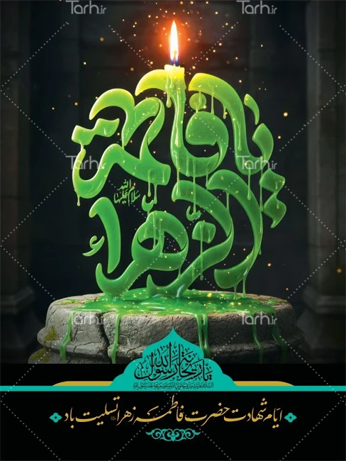 پوستر ایام فاطمیه لایه باز با فرمت psd و قابل ویرایش در نرم افزار فتوشاپ به صورت لایه باز توسط تیم طراحان طرح دات آی آر طراحی شده است. در طرح لایه باز فاطمیه از تصاویر و المان های با کیفیت و متناسب با استاندارد چاپ استفاده گردیده است. طرح بنر فاطمیه شامل تایپوگرافی یا فاطمه الزهرا به شکل شمع می باشد که المان های استفاده شده در بنر شهادت حضرت زهرا قابلیت ویرایش، جابه جایی و تغییر سایز را دارا بوده و شما می توانید متناسب با سلیقه خودتان طرح بنر شهادت حضرت فاطمه را ویرایش نمایید.