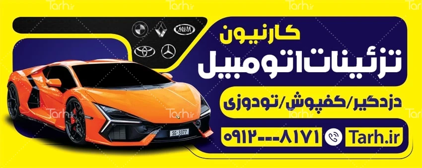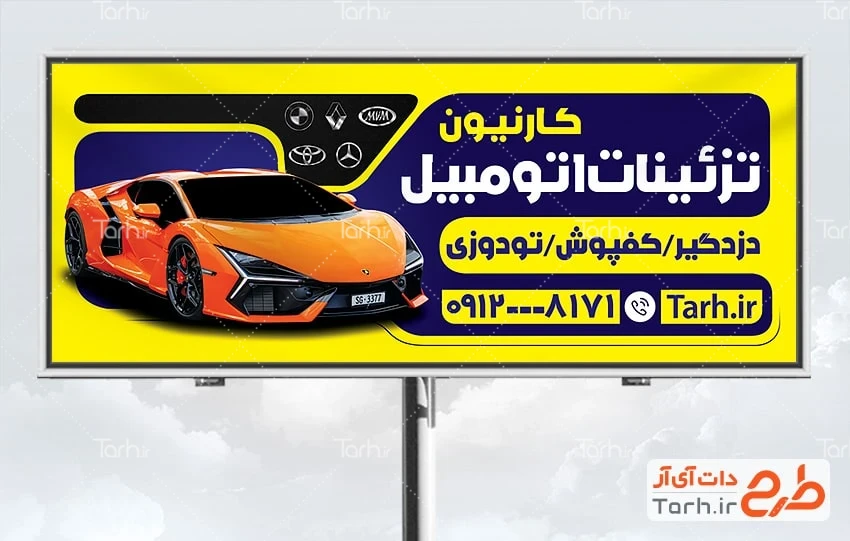 طرح بیلبورد تبلیغاتی تزئینات اتومبیل با فرمت psd و قابل ویرایش در نرمافزار فتوشاپ بهصورت لایه باز توسط تیم طراحان طرح دات آی آر طراحی شده است. در طرح لایه باز بنر بیلبورد لوکس خودرو از تصاویر و المانهای باکیفیت و متناسب با استاندارد چاپ استفادهشده، همچنین نکات مهم در طرح بنر مشاغل مانند رنگبندی، رعایت حاشیه، فاصلهها، سایز و نوع فونت مناسب طراحی تابلو مشاغل و ... رعایت گردیده است. طرح بنر لوکس خودرو شامل عکس ماشین میباشد که المانهای استفادهشده در طرح تابلو لوکس اسپرت ماشین قابلیت ویرایش، جابهجایی و تغییر سایز را دارا بوده و شما میتوانید متناسب باسلیقه خودتان طرح بنر تبلیغاتی لوکس خودرو را ویرایش نمایید، همچنین با تغییر تصاویر و متنها میتوانید طرح تابلو تبلیغاتی لوازم لوکس اتومبیل را به طرح تابلوی شغل موردنظر خود تبدیل نمایید.