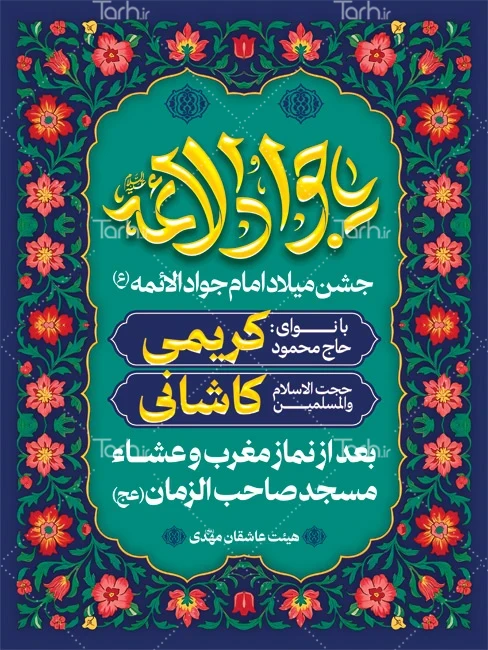 دانلود پوستر اطلاع رسانی میلاد امام جواد با تایپوگرافی یا جوادالائمه کد فایل 1432069