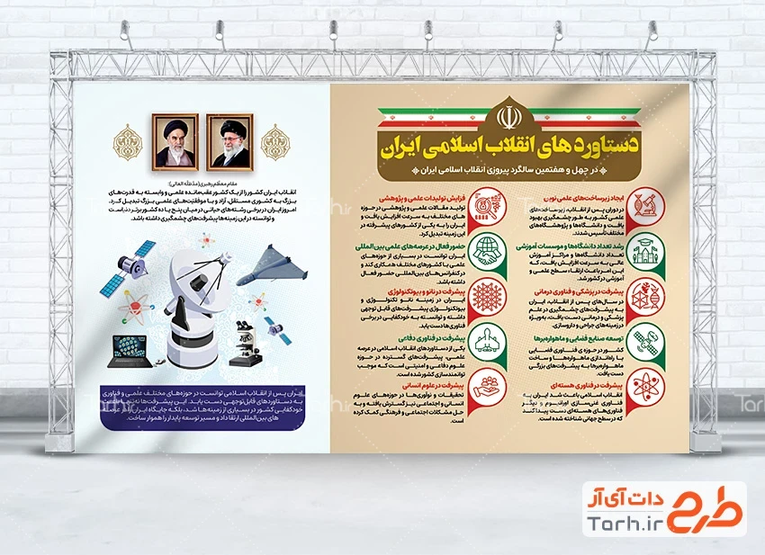 ابعاد قابل چاپ طرح لایه باز بنر دستاورد های انقلاب و کاربرد آن