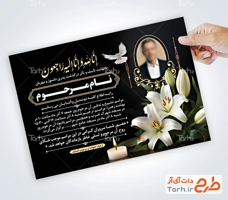 ابعاد قابل چاپ اعلامیه ترحیم رایگان پدر و کاربرد آن