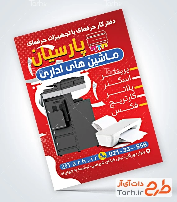 ابعاد طرح تراکت تبلیغاتی تجهیزات اداری در جدول ویژگیهای فایل درجشده و با توجه به لایه باز بودن و کیفیت بالای طرح ماشین های اداری، قابلیت ویرایش و تبدیل به سایز دلخواه، همچنین چاپ روی متریالهای مختلف مانند بنر، کاغذ، گلاسه و ... را دارا میباشد. برای مثال تراکت خام ماشین اداری در ابعاد A4 رزولوشن 300 dpi قابلیت چاپ بنر و لارج فرمت در ابعاد بزرگتر مانند 3 در 4 متر و بدون افت کیفیت را دارا میباشد. تراکت ها به عنوان یک ابزار تبلیغاتی بسیار موثر محسوب می شوند و به دلیل هزینه کم و تأثیر بالا، در بسیاری از کسب و کارها به عنوان روشی برای تبلیغات و رویدادهای مختلف مورد استفاده قرار می گیرند.