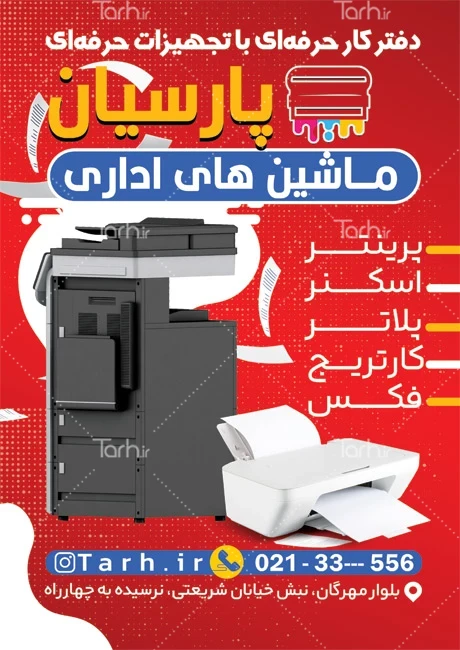 طرح پوستر تبلیغاتی ماشین اداری با تم قرمز کد فایل 1495368